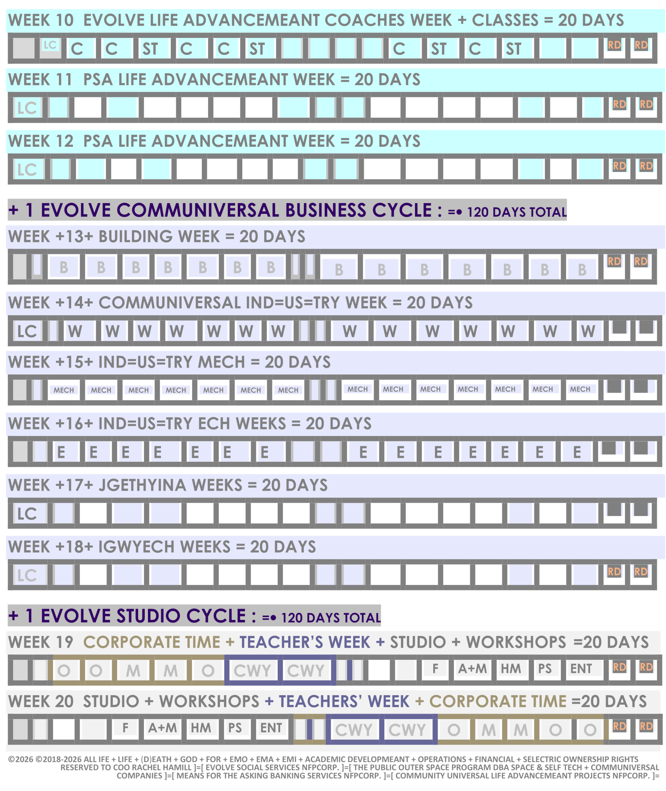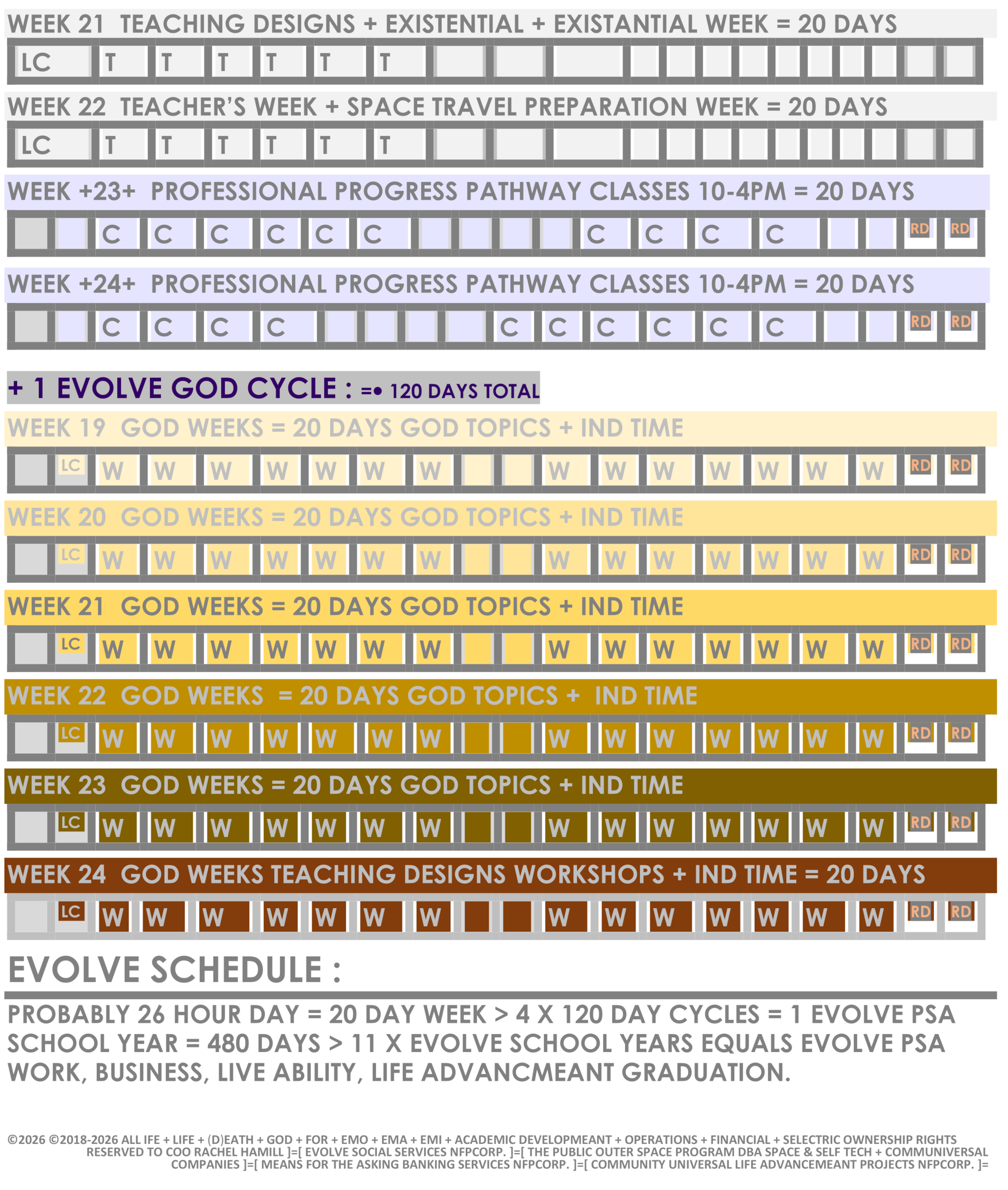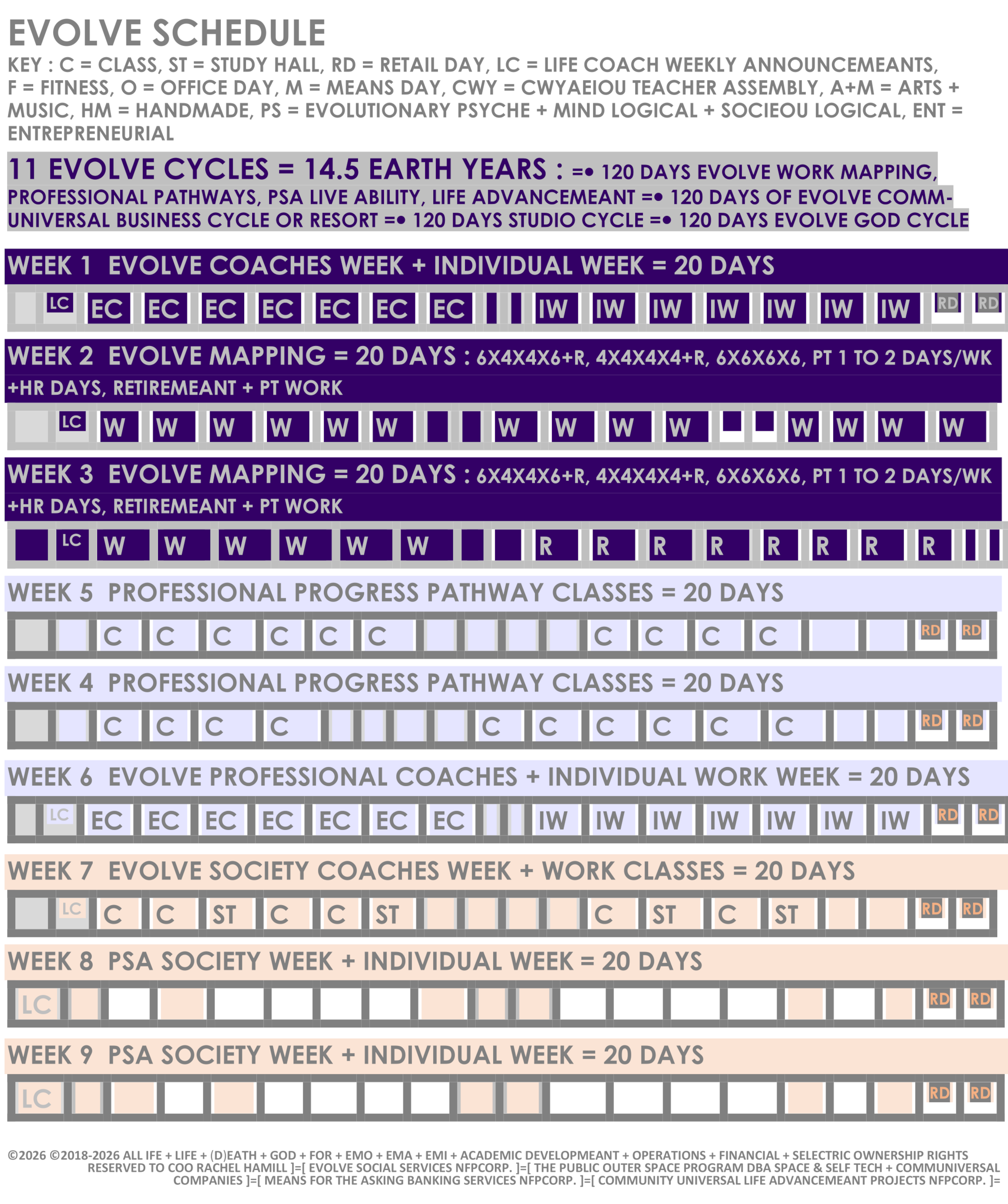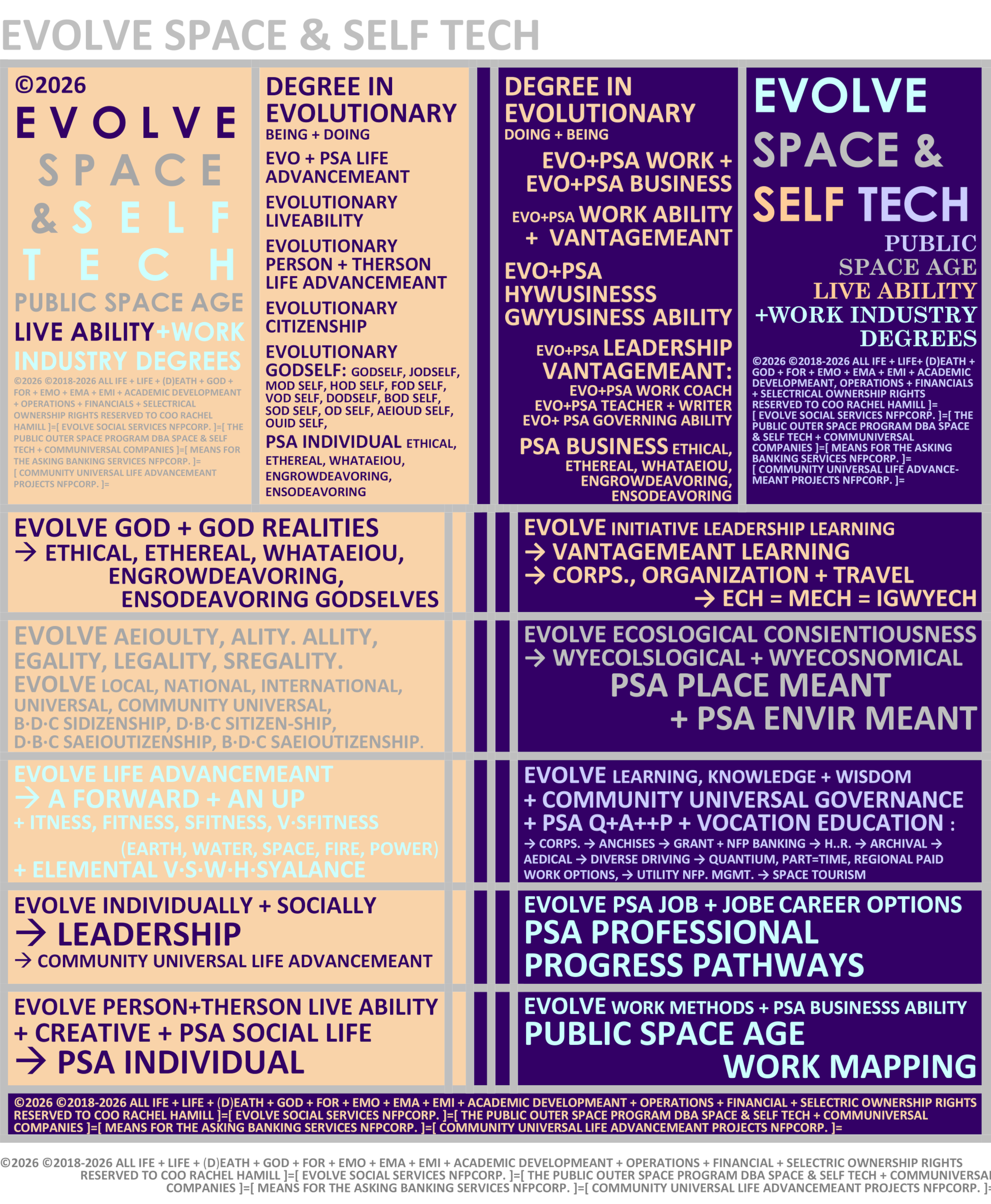 EVOLVE SPACE & SELF TECH AD + SCHEDULE UPDATES : 14.5 EARTH YEARS PUBLIC SPACE AGE BUSINESS, WORK METHODS, LIVE ABILITY + LIFE ADVANCEMEANT.